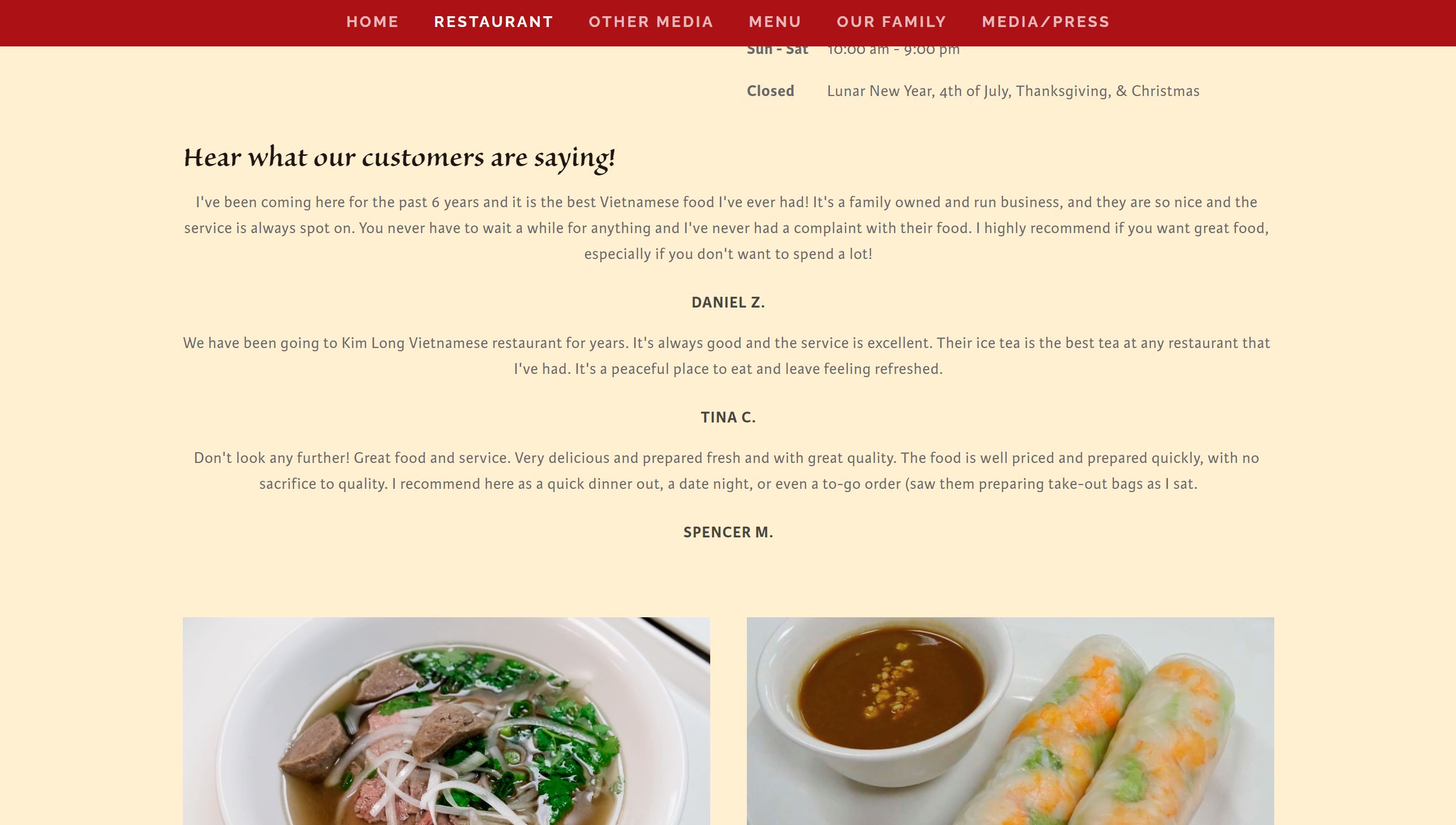 TM campaign’s developmental phase, the family behind Kim Long Vietnamese Restaurant (KL)needed an updated website that could house and promote all campaign assets.
